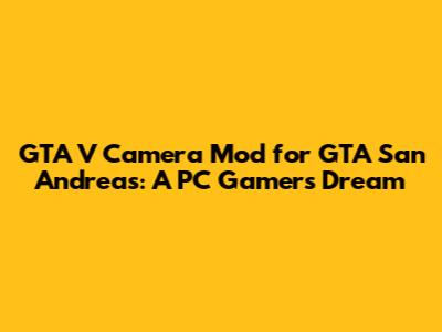 Hey guys, let's dive into something super cool for all you GTA San Andreas PC players out there: the GTA V Camera Mod! This mod lets you experience the classic GTA San Andreas with the slick, immersive camera angles of GTA V. It's like a fresh coat of paint on a beloved classic, making the gameplay feel totally new and exciting. Imagine cruising through Grove Street, but with the cinematic flair of Los Santos – pretty awesome, right? In this guide, we'll break down everything you need to know about the GTA V Camera Mod, from what it is, how to get it, and how to make sure it's running smoothly on your PC. Let's get started!