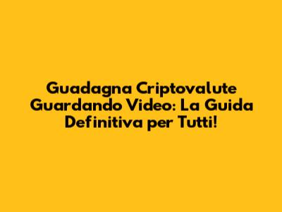 Ehi ragazzi! Siete pronti a scoprire un modo super interessante e, diciamocelo, piuttosto rilassante per mettere le mani su un po' di criptovalute? Sì, avete capito bene: sto parlando di guadagnare crypto guardando video! Sembra quasi troppo bello per essere vero, vero? Ma fidatevi, è una realtà sempre più diffusa nel mondo delle criptovalute. In questo articolo, faremo un tuffo profondo in questo argomento, scoprendo come funziona, quali sono le migliori piattaforme, i pro e i contro, e qualche dritta per massimizzare i vostri guadagni. Preparatevi, perché questo potrebbe essere il vostro nuovo modo preferito per arrotondare e familiarizzare con il mondo crypto!