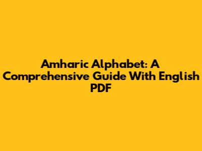 Amharic Alphabet: A Comprehensive Guide With English PDF