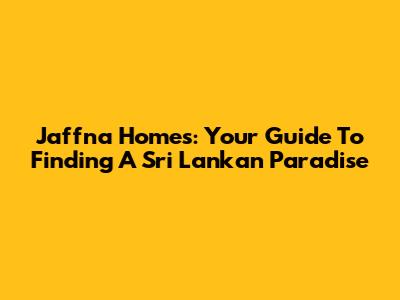 Jaffna Homes: Your Guide To Finding A Sri Lankan Paradise