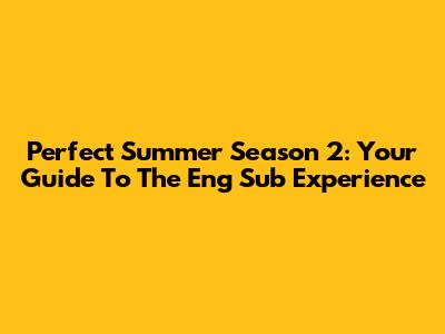 Perfect Summer Season 2: Your Guide To The Eng Sub Experience