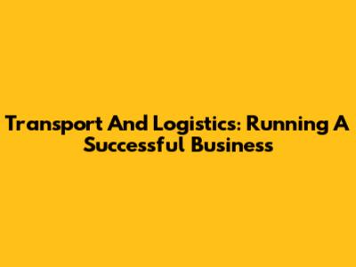Transport And Logistics: Running A Successful Business