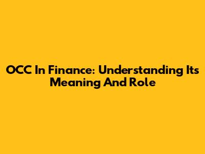 OCC In Finance: Understanding Its Meaning And Role