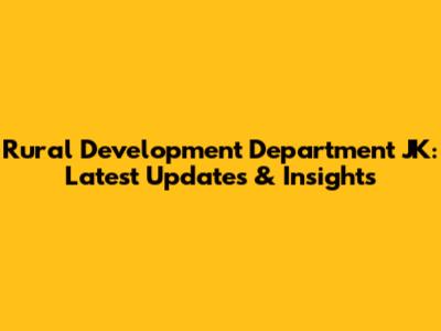 Rural Development Department JK: Latest Updates & Insights