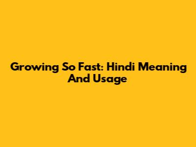 Growing So Fast: Hindi Meaning And Usage