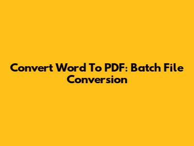 Convert Word To PDF: Batch File Conversion