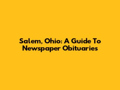 Salem, Ohio: A Guide To Newspaper Obituaries