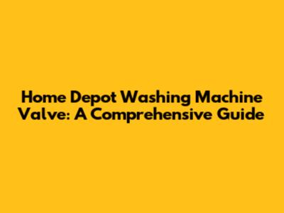 Understanding the Home Depot Washing Machine Valve