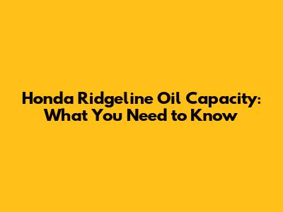 Understanding Honda Ridgeline Oil Capacity Requirements