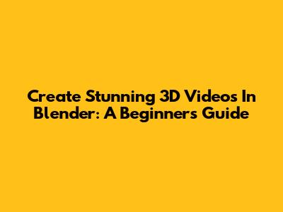 Create Stunning 3D Videos In Blender: A Beginner's Guide