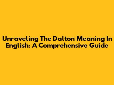 Unraveling The Dalton Meaning In English: A Comprehensive Guide
