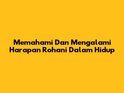 Memahami Dan Mengalami Harapan Rohani Dalam Hidup