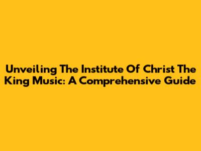 Unveiling The Institute Of Christ The King Music: A Comprehensive Guide