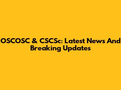 OSCOSC & CSCSc: Latest News And Breaking Updates