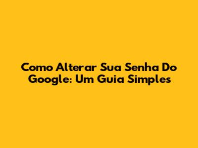 Como Alterar Sua Senha Do Google: Um Guia Simples