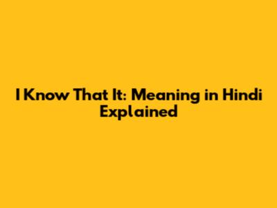 Decoding "I Know That It" in Hindi