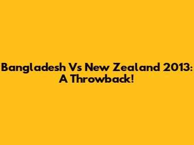 Bangladesh Vs New Zealand 2013: A Throwback!