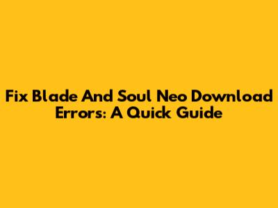 Fix Blade And Soul Neo Download Errors: A Quick Guide