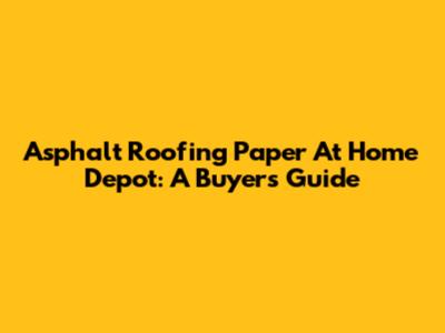 Asphalt Roofing Paper At Home Depot: A Buyer's Guide