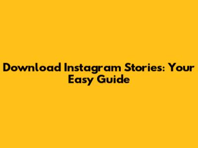 Download Instagram Stories: Your Easy Guide