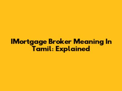 IMortgage Broker Meaning In Tamil: Explained