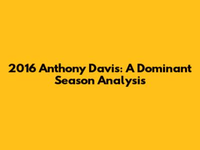 2016 Anthony Davis: A Dominant Season Analysis