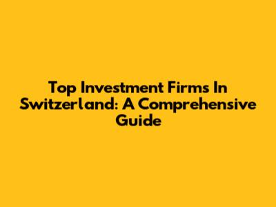 Top Investment Firms In Switzerland: A Comprehensive Guide