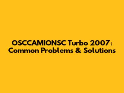 OSCCAMIONSC Turbo 2007: Common Problems & Solutions