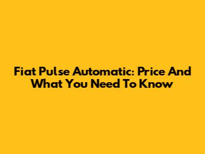 Fiat Pulse Automatic: Price And What You Need To Know