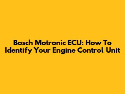 Bosch Motronic ECU: How To Identify Your Engine Control Unit