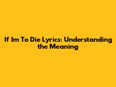 Alright, so we've chatted about the emotional punch these lyrics pack. But where exactly do you find these "if I'm to die lyrics", and how does the context change their meaning? It's super important, because the same words can mean totally different things depending on the song's story, the genre, and the artist's intent.