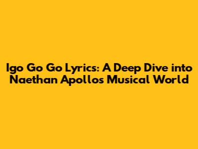 Hey music lovers, let's dive into the electrifying world of Naethan Apollo and his hit track, "Igo Go Go." This song isn't just a collection of catchy beats and rhythms; it's an experience, a journey. If you're a fan who's been grooving to the track or someone just discovering this gem, you're in for a treat. We'll be dissecting the Igo Go Go lyrics, the vibe, and what makes this song so darn irresistible. Trust me, by the end of this, you'll have a newfound appreciation for Naethan Apollo's artistry. So, let's get this show on the road, shall we?