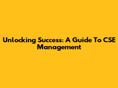 Unlocking Success: A Guide To CSE Management