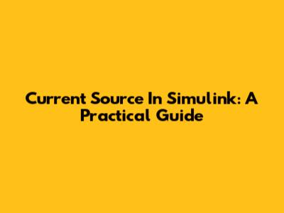 Current Source In Simulink: A Practical Guide