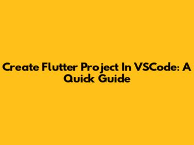 Create Flutter Project In VSCode: A Quick Guide