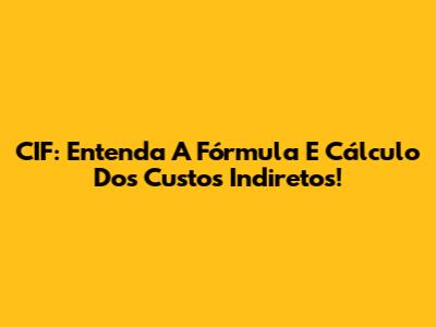 CIF: Entenda A Fórmula E Cálculo Dos Custos Indiretos!