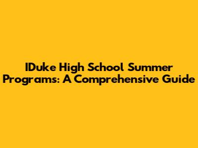 IDuke High School Summer Programs: A Comprehensive Guide