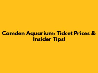 Camden Aquarium: Ticket Prices & Insider Tips!