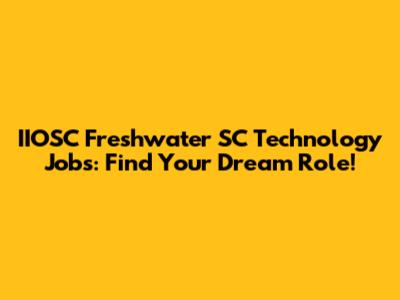 Are you on the hunt for IIOSC freshwater SC technology jobs? Well, you've come to the right place! In this article, we'll dive deep into the world of IIOSC (International Institute for Sustainable Chemistry) and freshwater science technology jobs in South Carolina. We'll explore what IIOSC does, the types of tech jobs available in the freshwater sector, the skills you'll need to snag one of these awesome roles, and where to find the best job postings. So, buckle up and let's get started!