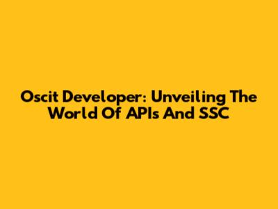 Oscit Developer: Unveiling The World Of APIs And SSC