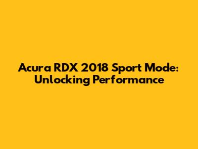 Acura RDX 2018 Sport Mode: Unlocking Performance