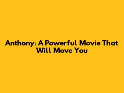 Anthony: A Powerful Movie That Will Move You