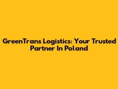 GreenTrans Logistics: Your Trusted Partner In Poland