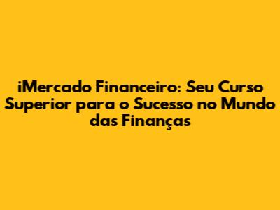iMercado Financeiro: Seu curso superior para o sucesso no mercado financeiro! Não perca mais tempo e venha fazer parte desta família!
