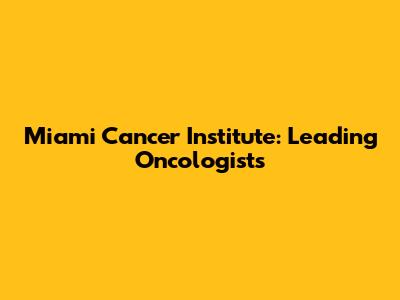 Miami Cancer Institute: Leading Oncologists