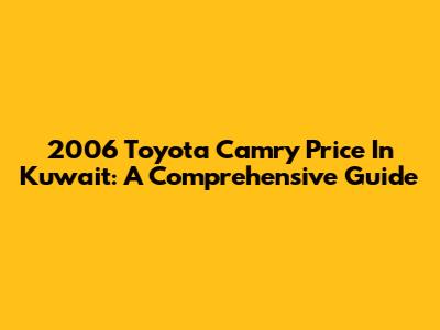 2006 Toyota Camry Price In Kuwait: A Comprehensive Guide