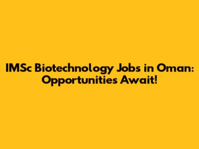 Discovering Biotechnology Jobs at IMSc in Oman