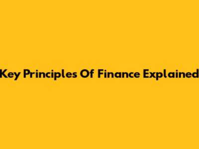 Key Principles Of Finance Explained