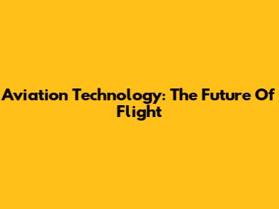 Aviation Technology: The Future Of Flight