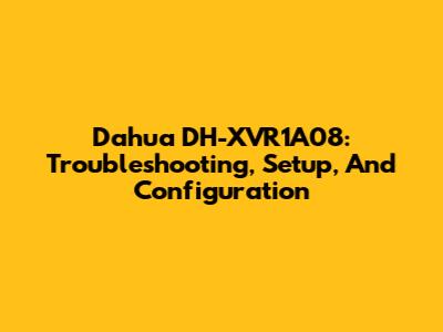 Dahua DH-XVR1A08: Troubleshooting, Setup, And Configuration